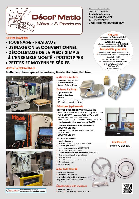 DÉCOLLETAGE DE LA PIÈCE SIMPLE À L’ENSEMBLE MONTÉ - PROTOTYPES - PETITES ET MOYENNES SÉRIES