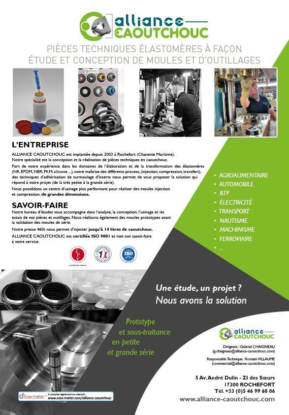 ALLIANCE CAOUTCHOUC est implantée depuis 2003 à Rochefort (Charente Maritime).