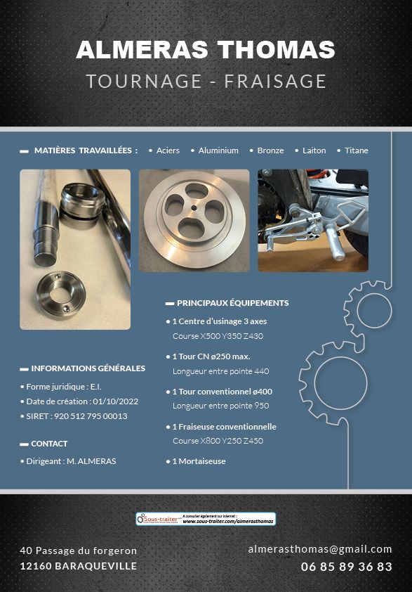 • 1 Centre d'usinage 3 axes - course X500 Y350 Z430