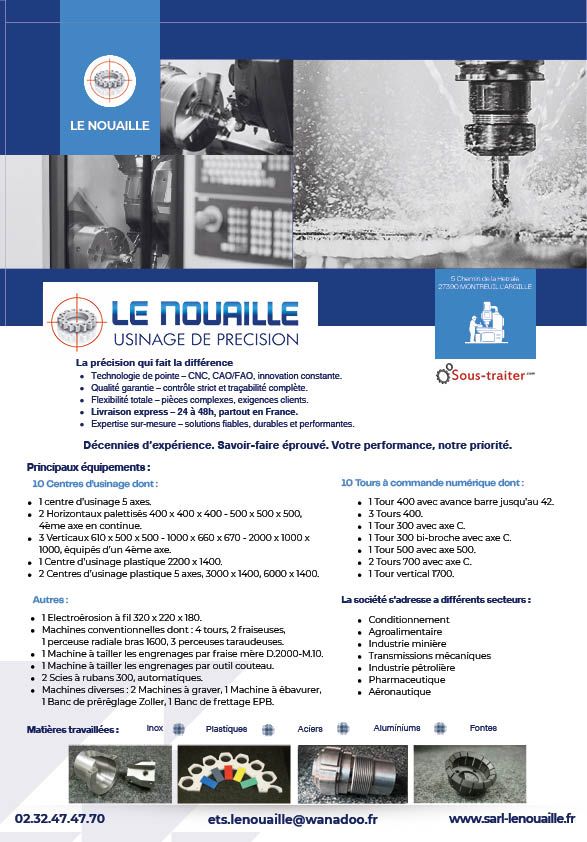 • Machines conventionnelles dont : 4 tours, 2 fraiseuses, 1 perceuse radiale bras 1600, 3 perceuses taraudeuses.