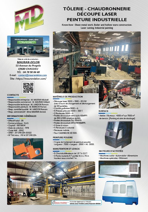• Découpe laser 3000 x 1500 – 20 KW avec 6 tours de chargement et déchargement de 120 palettes.