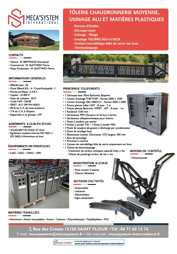 • Agrément soudure Norme Iso 9601-1 et 9602-2 Aluminium et Inox