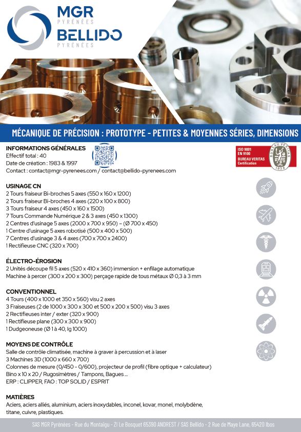 • 2 Centres d’usinage 3 axes (560 x 410 x 460 - 700 x 400 x 450)