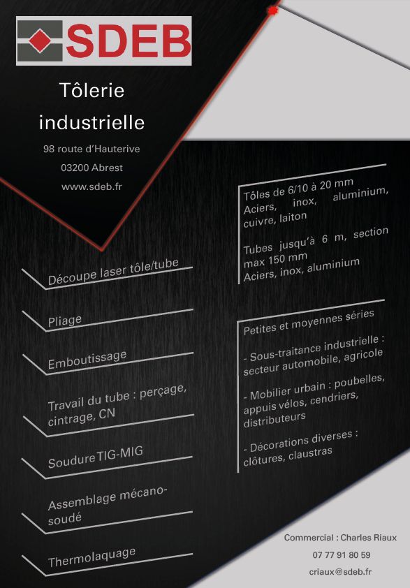 • Tôles de 6/10 à 20 mm - aciers, inox, aluminium, cuivre et laiton.