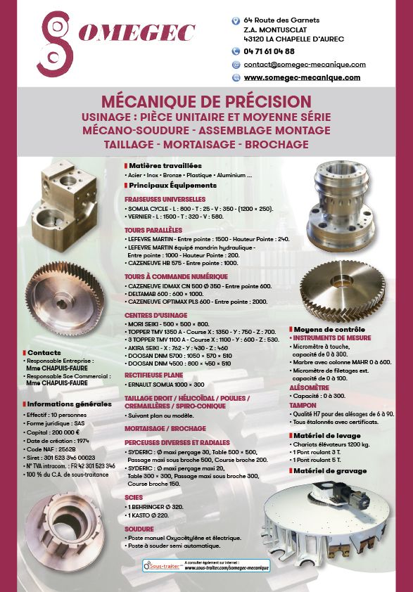 TAILLAGE DROIT / HÉLICOÏDAL / POULIES / CREMAILLÈRES / SPIRO-CONIQUE